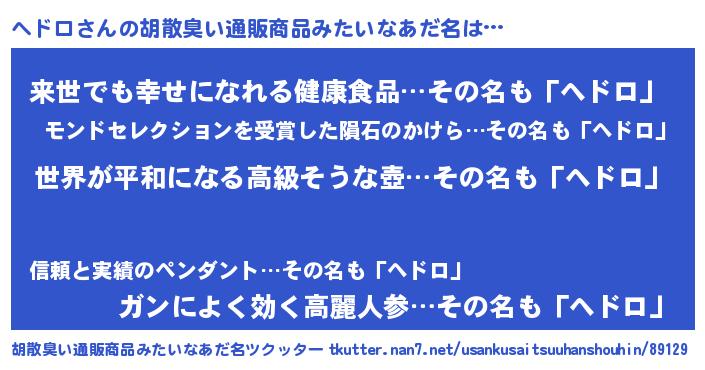 | ヘコむあだ名 | 『なまこ酢』『ヘドロ(笑)』『ヘドを』 |