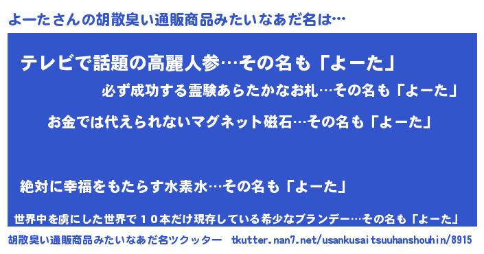 | ヘコむあだ名 | 『よーにー』『よーた(小並感)』 |