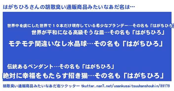 | 肩書あだ名 | 『はがちひろ少将』『はがちひろ社長』 |