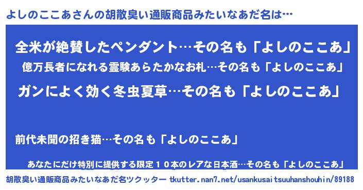 | 意味不明あだ名 | 『自称よしのここあ』 |