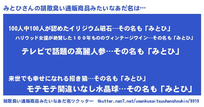 | 意味不明あだ名 | 『自称みとひ』『眠気覚ましガムみとひ味』 |