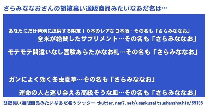 | 肩書あだ名 | 『さらみななお機長』『さらみななお少佐』 |