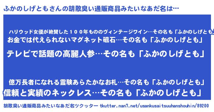 | 肩書あだ名 | 『ふかのしげとも閣下』 |