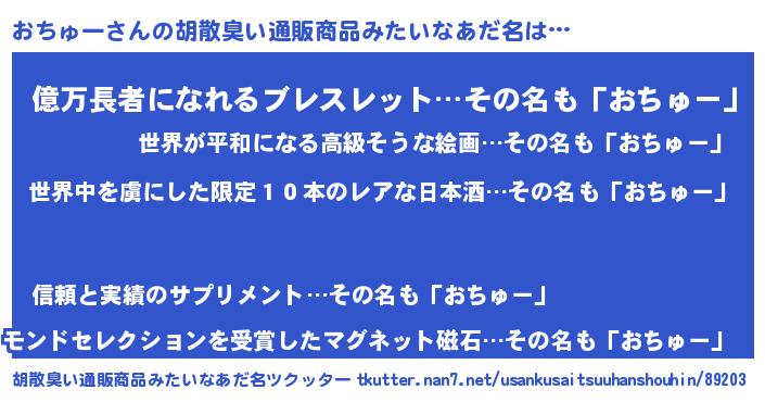 | 意味不明あだ名 | 『住所不定無職おちゅー(59歳)』 |
