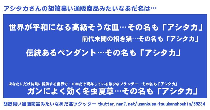| 意味不明あだ名 | 『とにかく怪しいアシタカ』 |