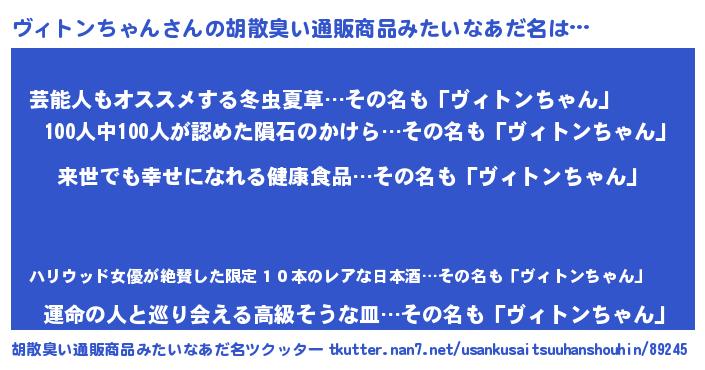 | 意味不明あだ名 | 『永久保存ヴィトンちゃん』 |