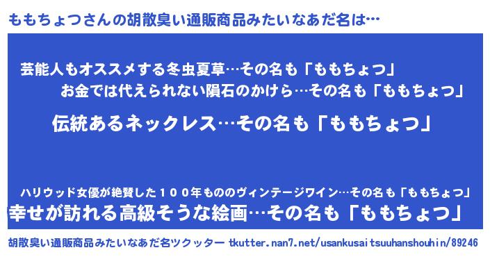 | 意味不明あだ名 | 『とにかく怪しいももちょつ』 |