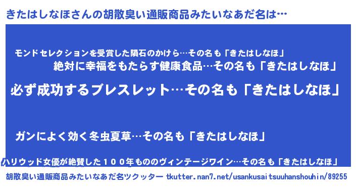 | ヘコむあだ名 | 『きたにー』『きたはしなほ(震え声)』 |