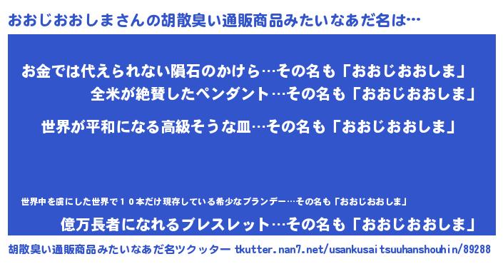 | 男性向けラノベタイトル風あだ名 | 『やはりおおじおおしまの青春ラブコメはまちがっている 』 |