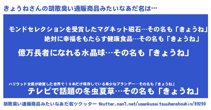 | 意味不明あだ名 | 『ペロリンきょうね』『自称きょうね』 |