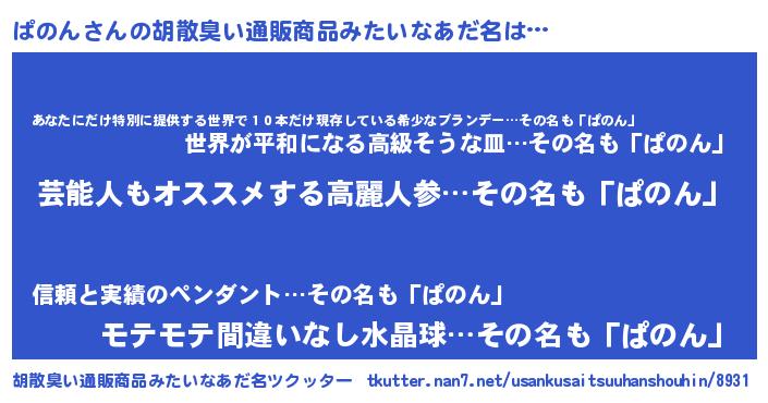 | ヘコむあだ名 | 『ぱのにー』『酢こんぶ』『ぱのっ子』 |