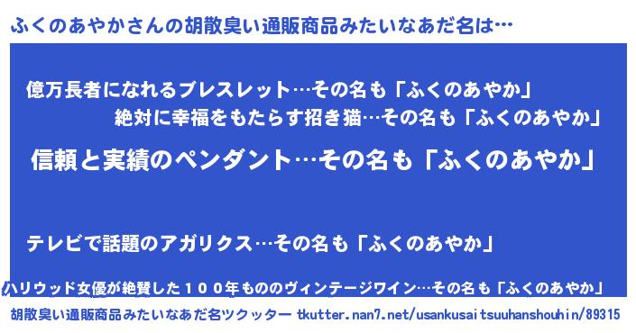 | 意味不明あだ名 | 『とにかく怪しいふくのあやか』 |