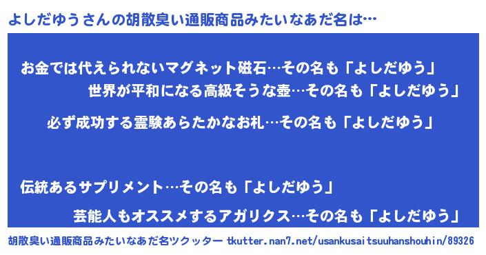 | 伝説のあだ名 | 『伝説のスナイパーよしだゆう』 |