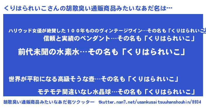 | 伝説のあだ名 | 『古文書に記された勇者くりはられいこ』 |
