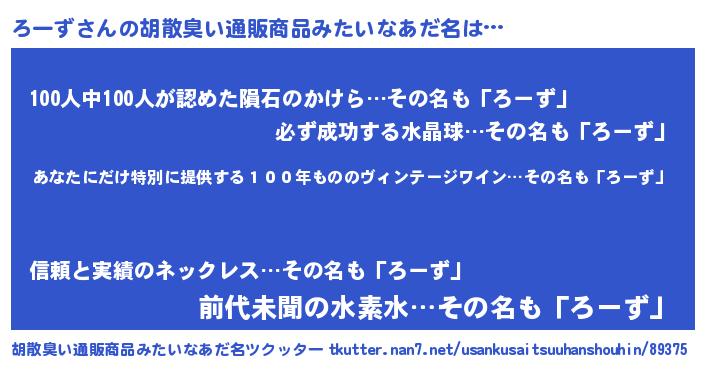 | 意味不明あだ名 | 『住所不定無職ろーず(5歳)』 |