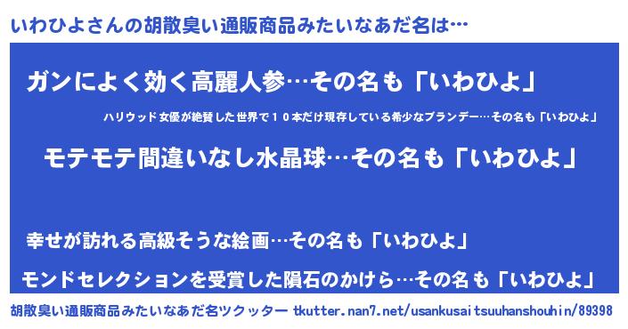 | 意味不明あだ名 | 『ペロリンいわひよ』『自称いわひよ』 |