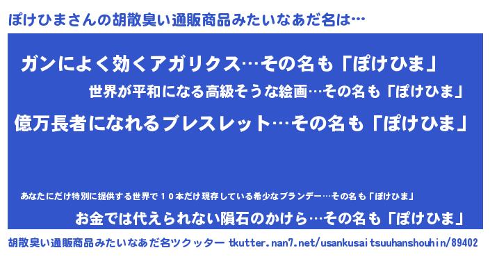 | ヒーロー風カッコイイあだ名 | 『スーパーポケヒマ』『愛の使者ぽけひま』 |
