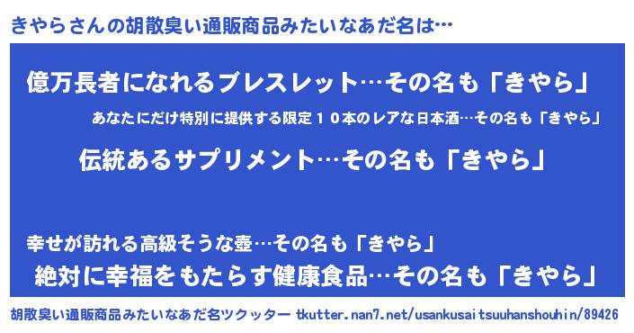 | 自動車の名前っぽいあだ名 | 『キルトヤパン』『キヤティマ』 |