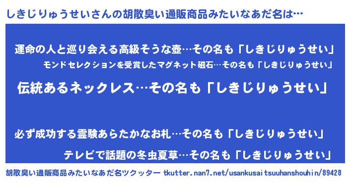 | 意味不明あだ名 | 『とにかく怪しいしきじりゅうせい』 |
