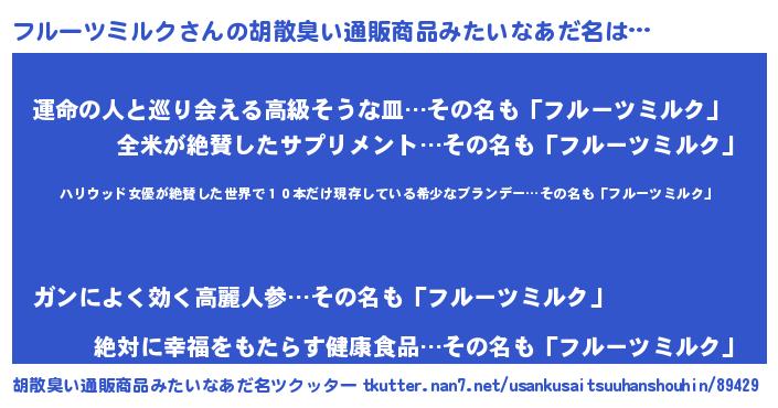 | 意味不明あだ名 | 『住所不定無職フルーツミルク(93歳)』 |