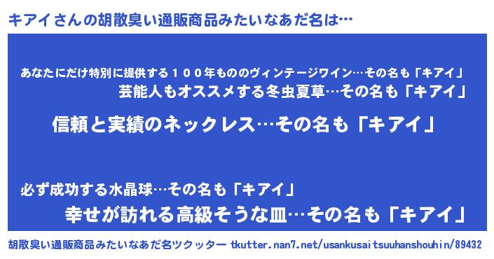 | 意味不明あだ名 | 『とにかく怪しいキアイ』『自称キアイ』 |