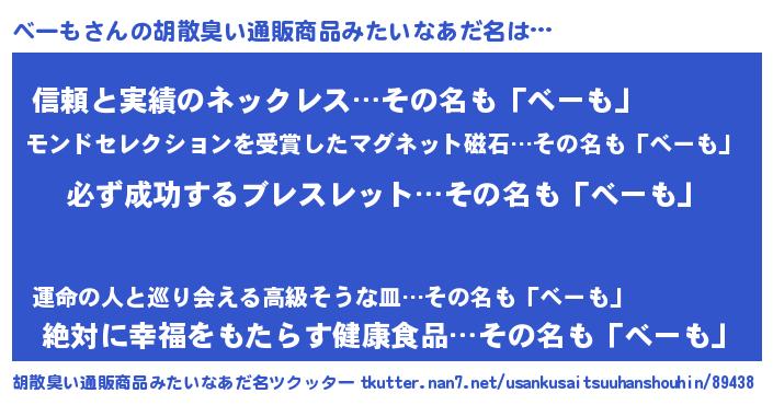 | ヘコむあだ名 | 『べーにー』『べーっ子』『なまこ酢』 |