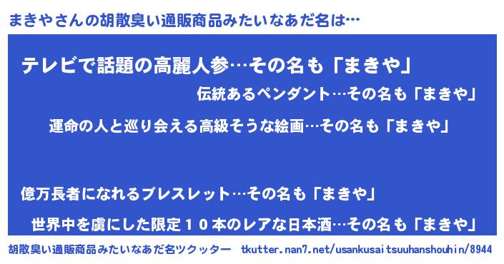 | 女子向けラノベタイトル風あだ名 | 『まきやの婚約者』『まきやアンティーク』 |