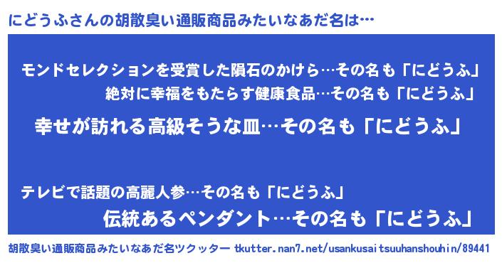 | 意味不明あだ名 | 『にどうふフォーエバー』 |