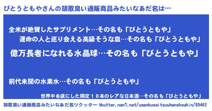 | ヘコむあだ名 | 『びとにゅー』『びとお』『豆乳』 |