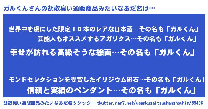 | 意味不明あだ名 | 『しいたけ科ガルくん属』『自称ガルくん』 |