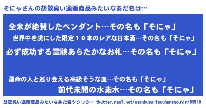 | 意味不明あだ名 | 『ペロリンそにゃ』『永久保存そにゃ』 |