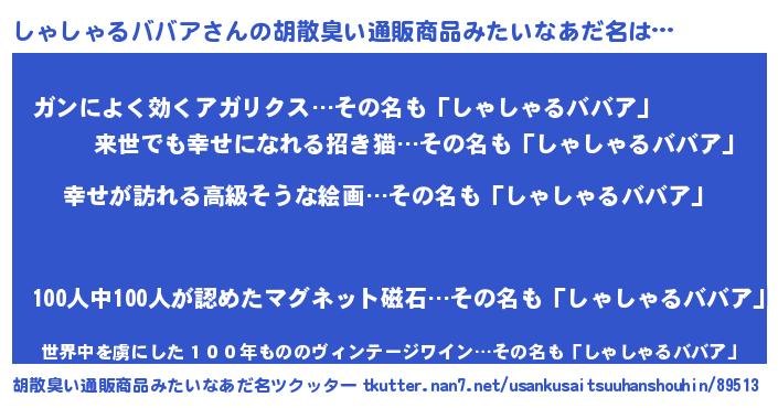 | 男性向けラノベタイトル風あだ名 | 『シャシャルババアスレイヤー』 |
