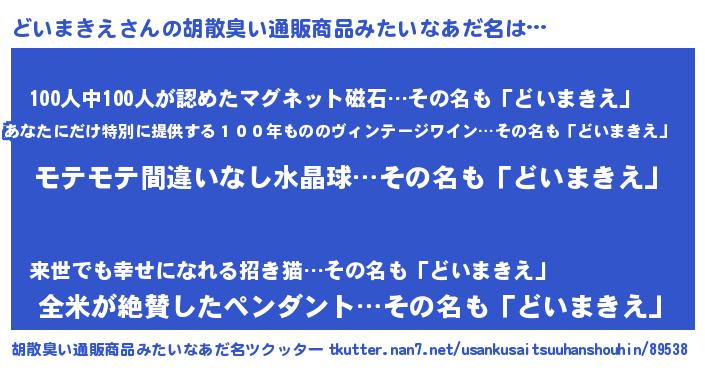 | 男性向けラノベタイトル風あだ名 | 『転生したらどいまきえだった件』 |