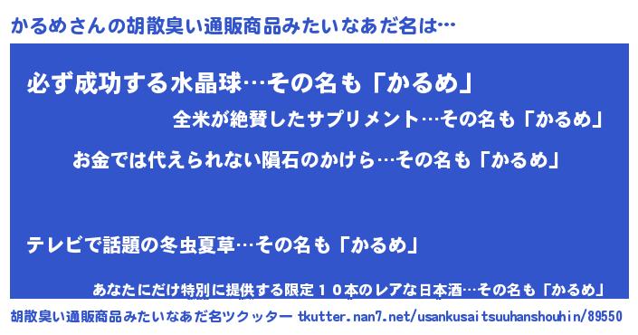 | 意味不明あだ名 | 『眠気覚ましガムかるめ味』『自称かるめ』 |