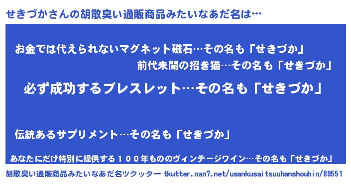 | ヘコむあだ名 | 『せきふぇ~』『せきづか(笑)』 |