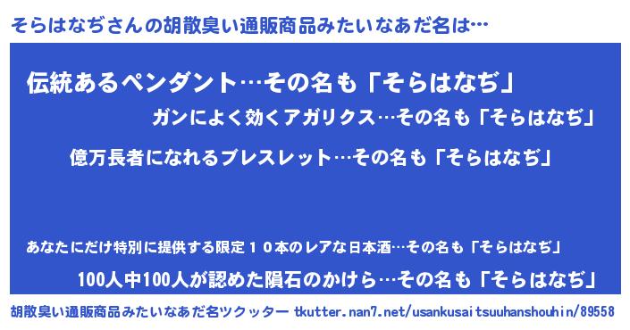 | 意味不明あだ名 | 『ペロリンそらはなぢ』『自称そらはなぢ』 |