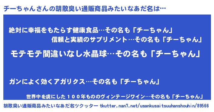 | ヒーロー風カッコイイあだ名 | 『スーパーチーチャン』『ネオチーチャン』 |