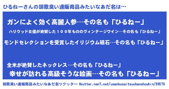 | 自動車の名前っぽいあだ名 | 『ヒンR』『レクヒス』『ヒクア』 |