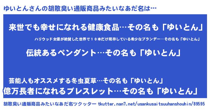 | 男性向けラノベタイトル風あだ名 | 『ゆいとんの嫁は女の子じゃないと思った?』 |