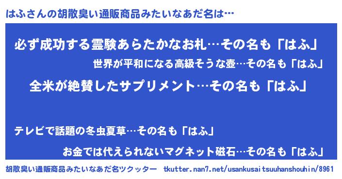 | ヘコむあだ名 | 『はふお』『はふっふぃ~』『豆乳』 |