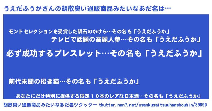| ヘコむあだ名 | 『うえふぇ~』『うえだふうか(震え声)』 |