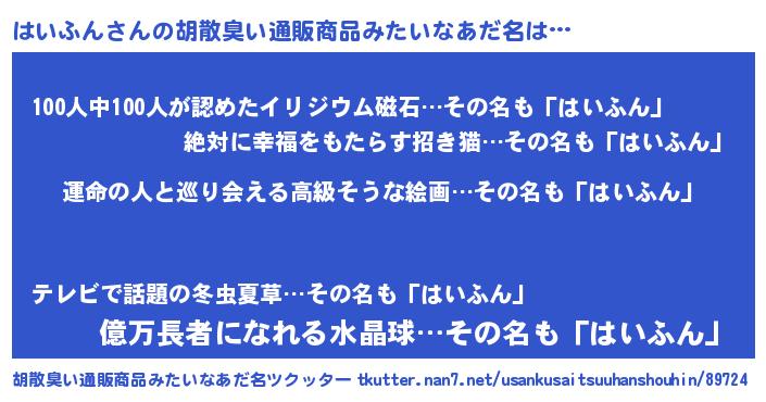 | 意味不明あだ名 | 『はいふんフォーエバー』 |