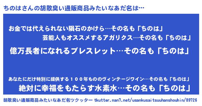 | ヘコむあだ名 | 『ちのにー』『ちのは(苦笑)』 |