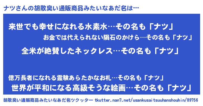 | 女子向けラノベタイトル風あだ名 | 『ナツ様がみてる』『ナツ伯爵の花嫁』 |