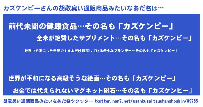 | 男性向けラノベタイトル風あだ名 | 『転生したらカズケンピーだった件』 |