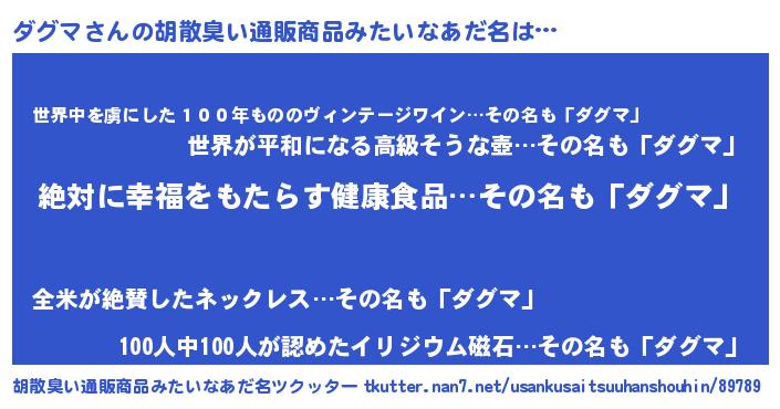| ヘコむあだ名 | 『ダグマ(苦笑)』『豆乳』『ダグ太郎』 |