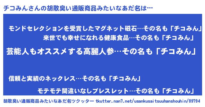 | ヘコむあだ名 | 『チコふぇ~』『チコみん(笑)』 |