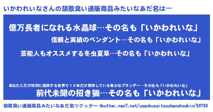 | ヘコむあだ名 | 『いかっふぃ~』『いかわれいな(爆)』 |