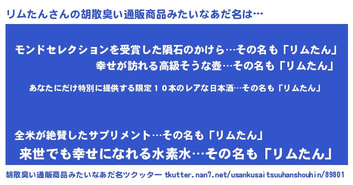 | 男性向けラノベタイトル風あだ名 | 『この素晴らしい世界にリムたんを!』 |