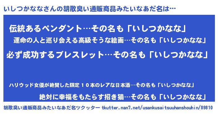 | 男性向けラノベタイトル風あだ名 | 『緋弾のイシツカナナ』 |